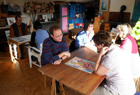 aus den Seelengebieten des Denken, Fühlen und Wollens bieten dazu den Ausgangspunkt. in der Praxis liegt die Gewichtung in begleiteten Kleingruppen- bzw. Zweiergesprächen. Ergänzend kommen wieder Übungen aus den oben genannten künstlerischen Bereichen hinzu.